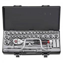 Набор головок 1/2" 10-32 мм; 3/8"-1" 6-гранных ,воротки, удлинители 41 пр. в кейсе