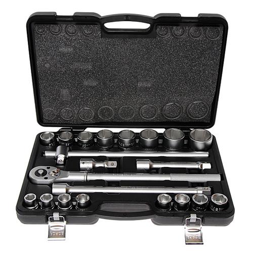 Набор головок 3/4" 19-50 мм.,6-гранных , вороток , удлинители,трещотка 21 пр. в пластиковом кейсе