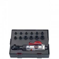Пневмотрещотка 0-40,5 Нм 1/4" 240об/мин. 90Psi с набором 6-гр. ударных головок 4-13мм 13пр. в кейсе